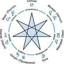 7 планет образуют традиционную звезду магов. Это семиконечная звезда.